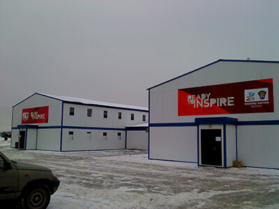 В столице Татарстана - г. Казань было установлено АБК (административно-бытовое здание) штаба стройки. Здание состоит из общежития для проживания рабочих, офисной части - непосредственно самого штаба стройки и конференц-зала. Конференц-зал располагается в середине в виде перемычки между двумя основными двухэтажными зданиями.