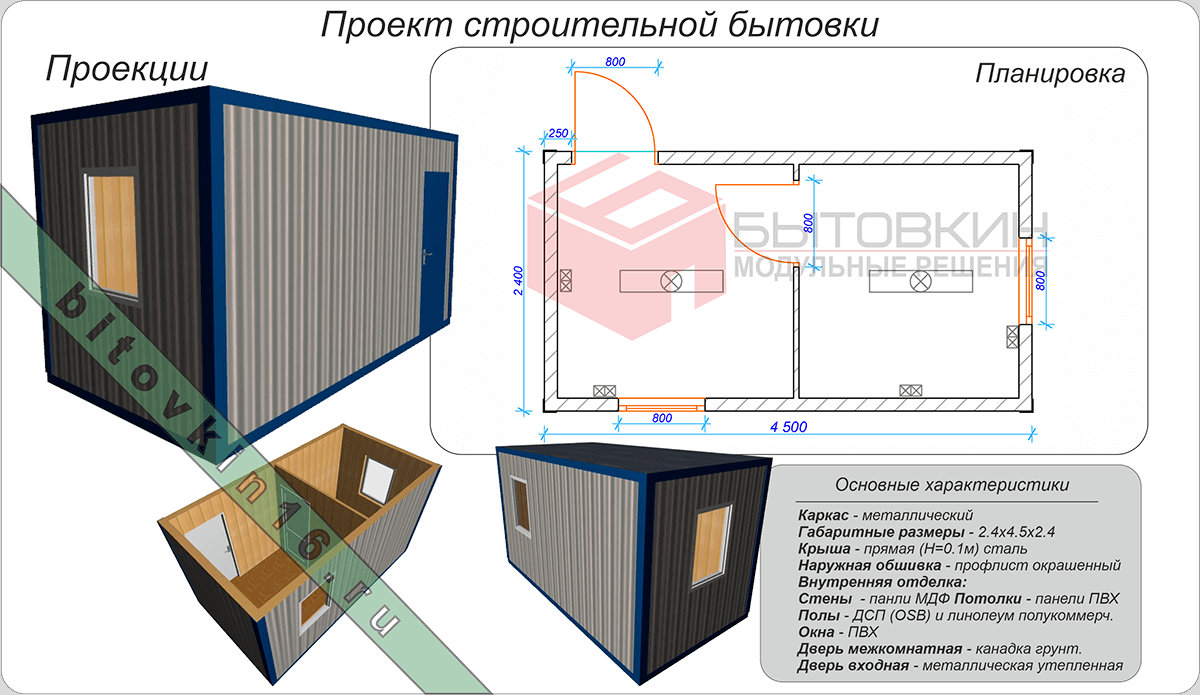 Первоначально данные строения изготавливались на деревянном каркасе, но потом, с учетом постоянных их перевозо,к стали варить металлические каркасы, обшивать их и утеплять. Так появились популярные и до сих пор - строительные бытовки на металлическом каркасе.