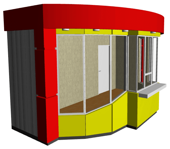 Следующее направление производства предназначено для предпринимателей и предприятий сферы услуг и торговли - это торговые киоски, павильоны и минимаркеты. Нами производятся как бюджетные торговые помещения с обшивкой более дешевым стеновым профлистом, так и модульные здания современного дизайна из дорогостоящих композитных материалов. Особенно популярны высоко бюджетные киоски и павильоны в крупных городах.