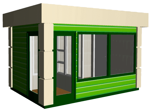 Второе и немаловажное направление производства - это помещения для охраны: посты охраны, контрольно-апропускные пункты, проходные и наблюдательные вышки. Отличительной особенностью данных модульных конструкций является круговое остекление, то есть окна расположены во всех стенах помещения для обеспечения кругового обзора.