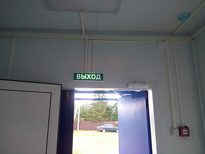 Здание пункта оказания первой медицинской площади установлено на ленточный фундамент сечением 0.3х1.0м и состоит из 7 модулей 2.4*6.0м. Каркас металлический. Стены - сэндвич-панель белого цвета.