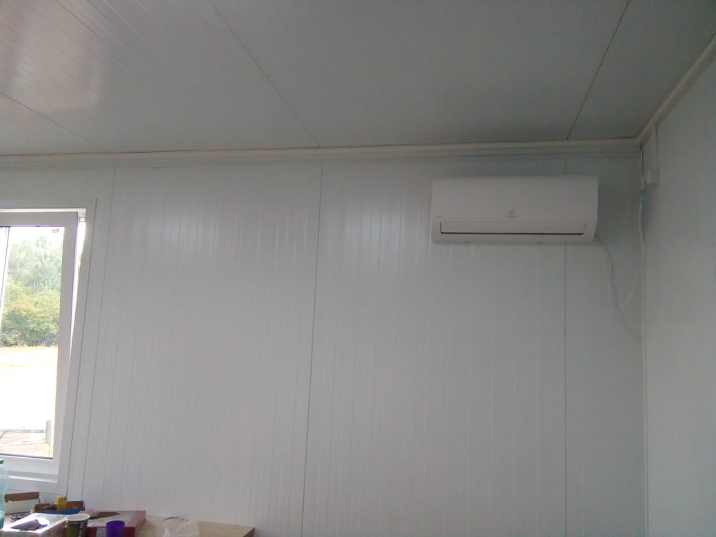 Потолки с утепляющим слоем в 150мм обшиваются панелями ПВХ с глянцевым покрытием. В помещении приема больных установлен кондиционер.