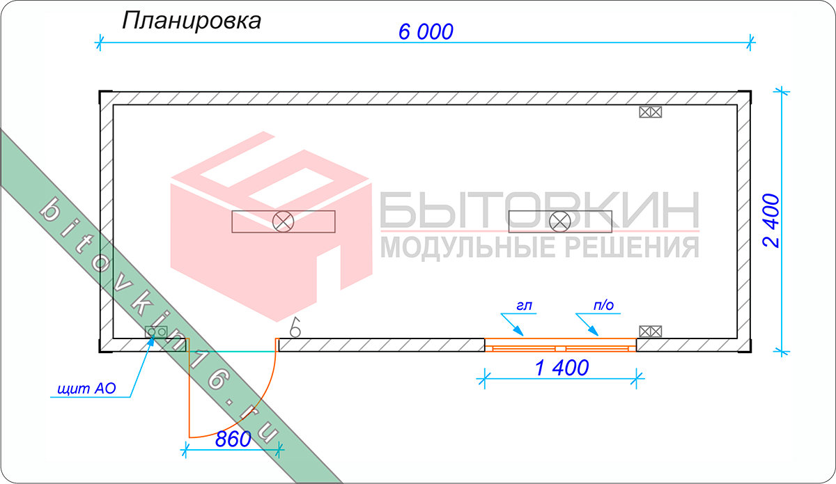 Бытовка БКМ225 2.4х6.0м - эскизный проект.