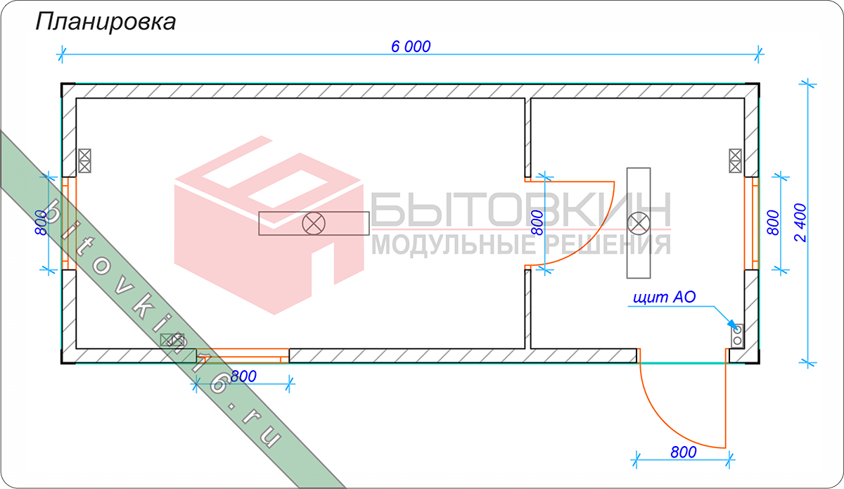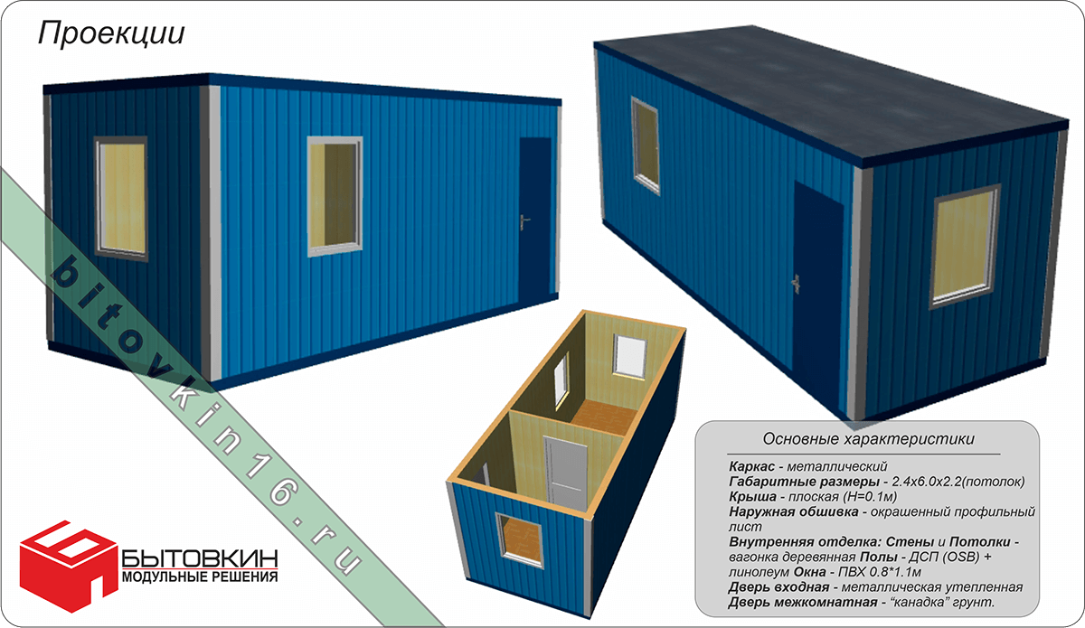 Бытовка БКМ222 2.4х6.0м - эскизный проект.