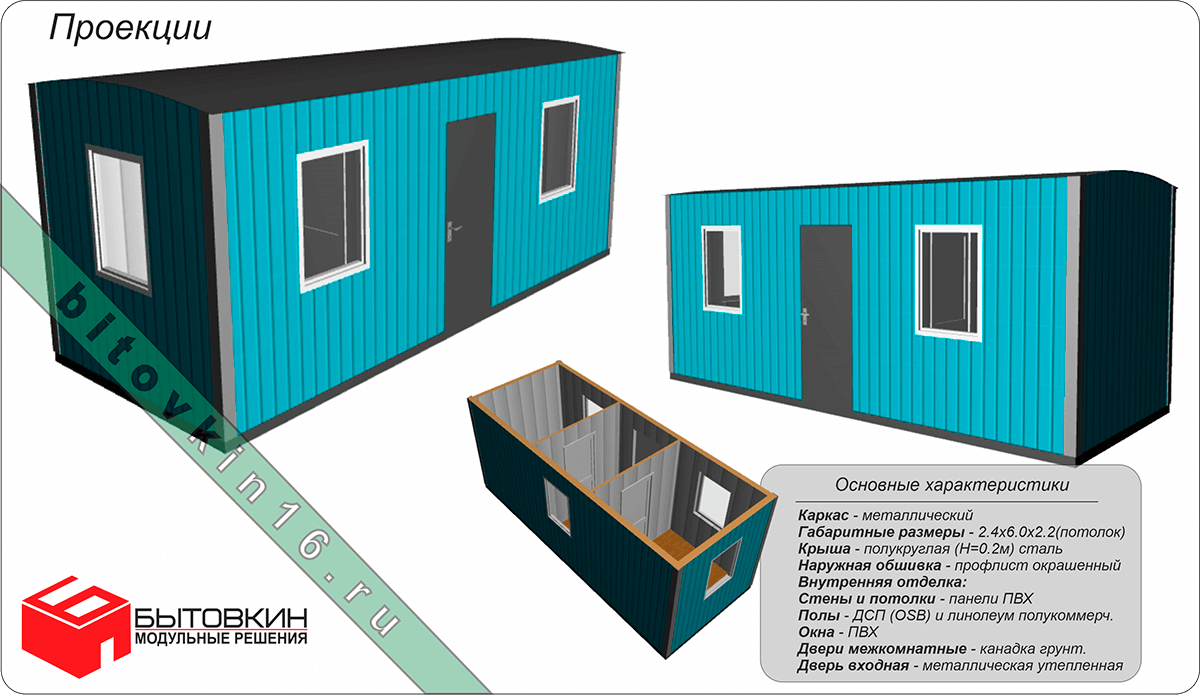 Бытовка БКМ223 2.4х6.0м - эскизный проект.